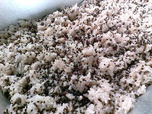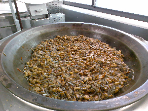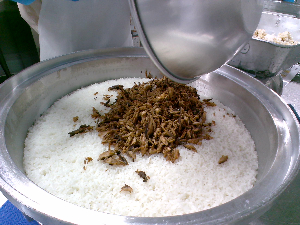 鮭をほぐしているところ