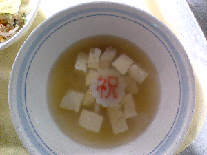ひとこと:今日は、入一小の開校記念日です。給食では、150周年をお祝いして、ちらし寿司とすまし汁のお祝いメニューを作りました。これからも、入一小のみなさんが元気に過ごせるように願いを込めました。