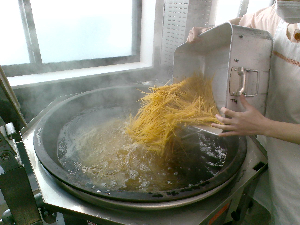 チキンを揚げている様子