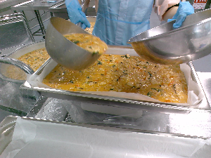 入一小の人気メニューであるカレーライスを作りました。普段よりすこしカレー粉を少なめにしてマイルドな味に仕上げています。