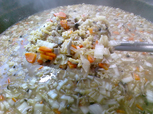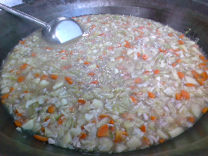 今日の中華スープの中には玉ねぎが入っています。