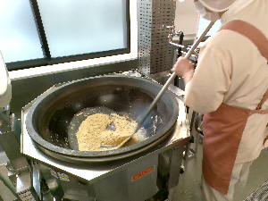 押麦はローラーで粒を押しつぶすことで、水を吸収しやすいように加工しています。