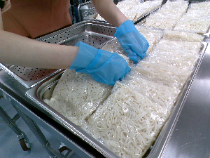 うどんは小麦粉に水と塩を加え、こねて作る食べ物です。