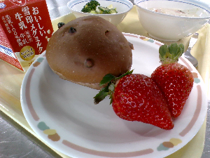 ひとこと:今日は、セレクト揚げパンです。きなこ、ココア、シュガーの中から、ひとつを選びました。入一小で一番人気があったのは、ココアでした。