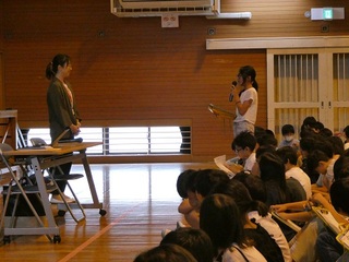 4年生が調べた「障がい者理解教育」の内容を2年生に発表にきました。