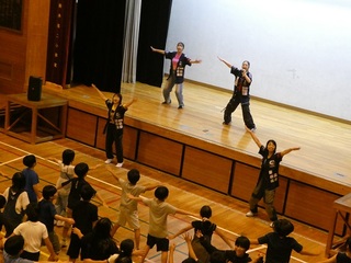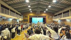今年も本校の卒業生で、現在もダブルダッチD.S.Pとして国際大会などで活躍されている皆さんによる、体験会を行うことができました。かっこいいパフォーマンスの後には、ひとりひとりに実演指導をしていただき、白熱した時間を過ごすことができました。