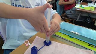 気温14度の肌寒い日中でしたが、的は40度くらいになっていて、こどもたちも驚きの声が出ていました。