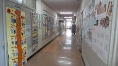 教員室前の廊下には各校で人権をテーマに取り組んでいただいた作品が展示されました。