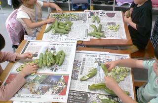 1年生がむいたそら豆は給食に出され、おいしくいただきました。