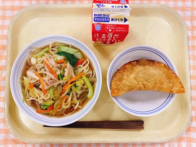 牛乳 醤油ラーメン 野菜たっぷり揚げぎょうざ