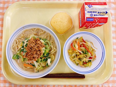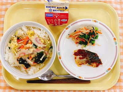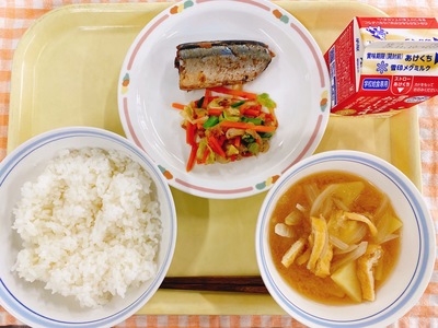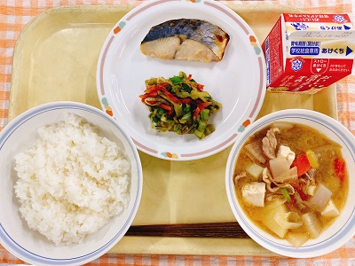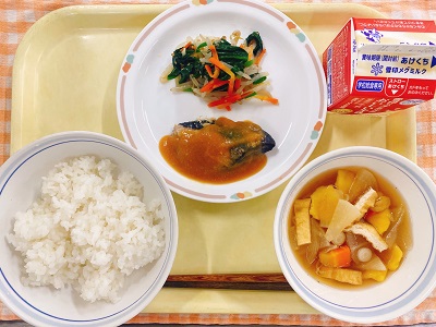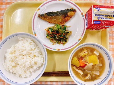 牛乳 ご飯 さばの味噌煮風 磯和え けんちん汁