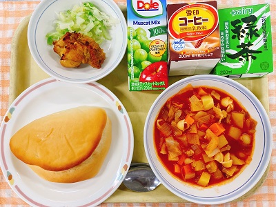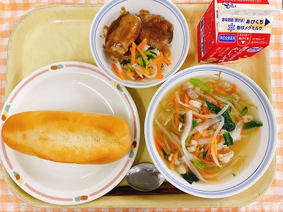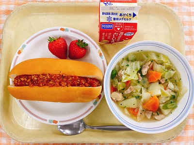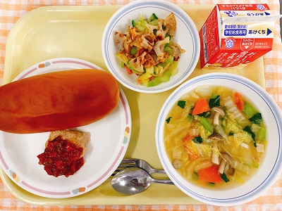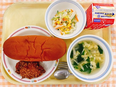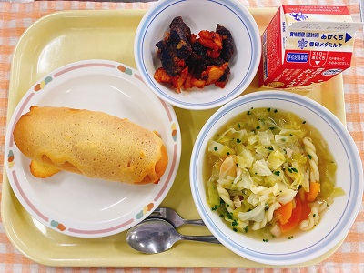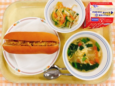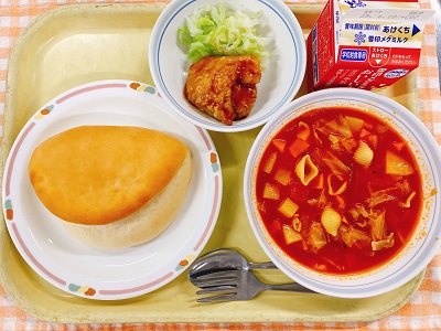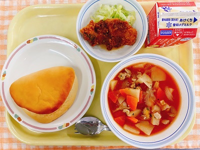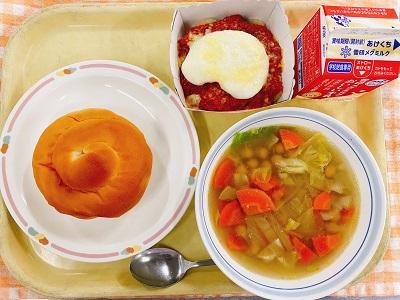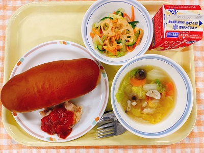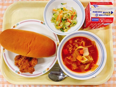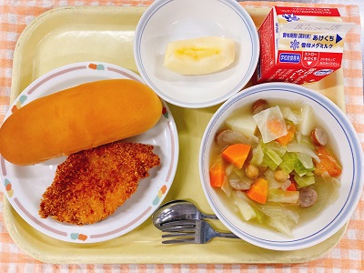 牛乳 ミルクパン ミラノ風チキンカツ イタリアンサラダ ミネストローネ
