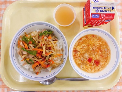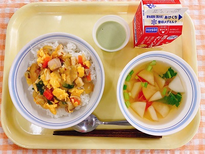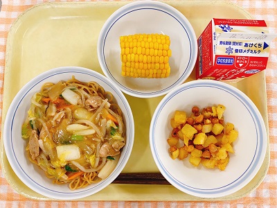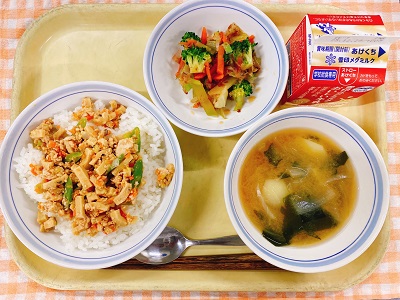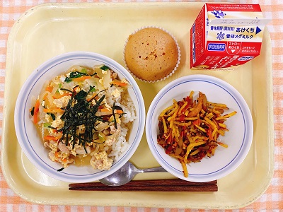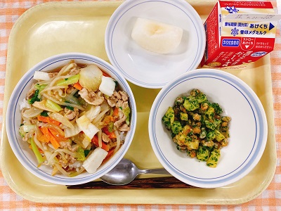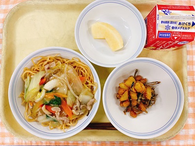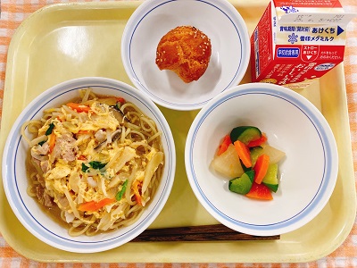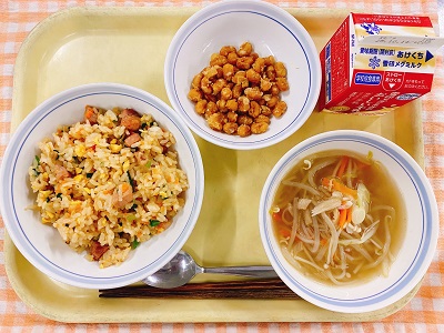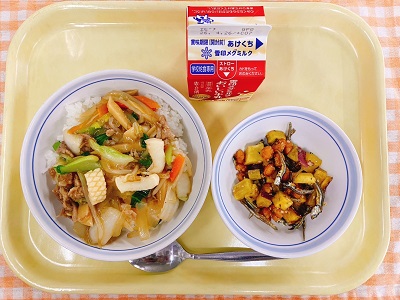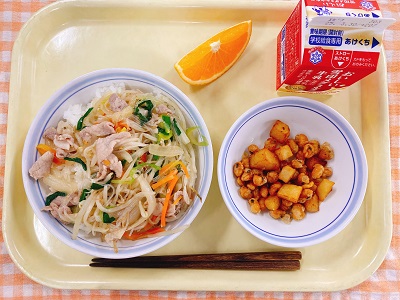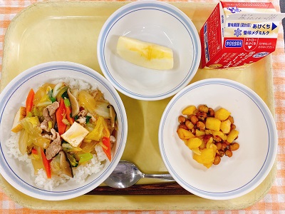 牛乳 中華丼 大豆と小魚の揚げ煮