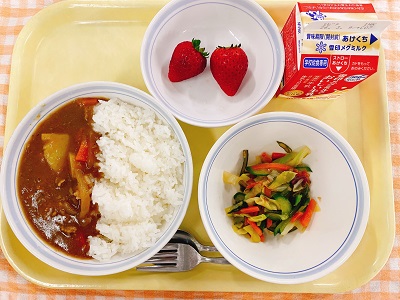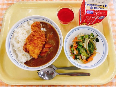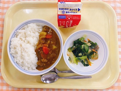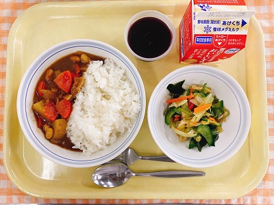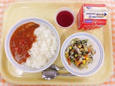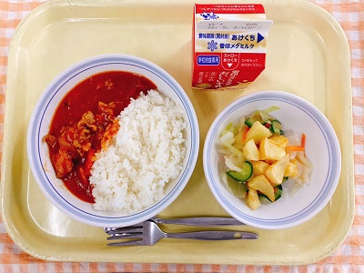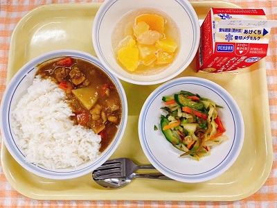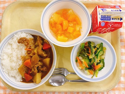 牛乳 チキンカレーライス 海藻サラダ フルーツポンチ