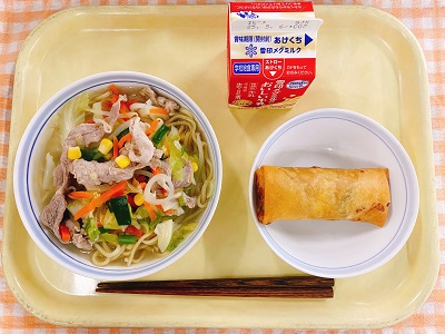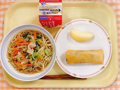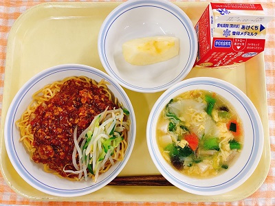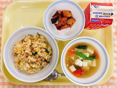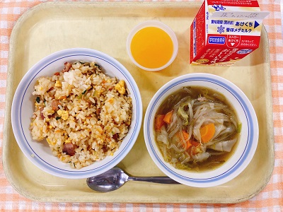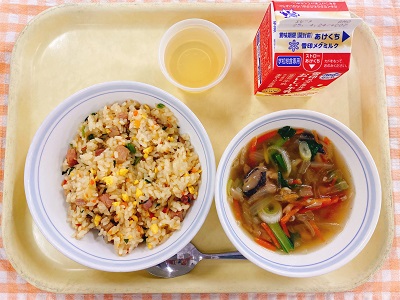 牛乳 焼豚チャーハン 春雨スープ アップルゼリー
