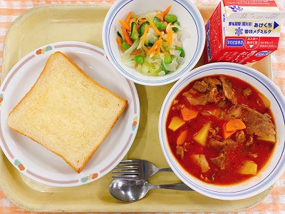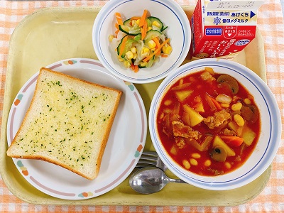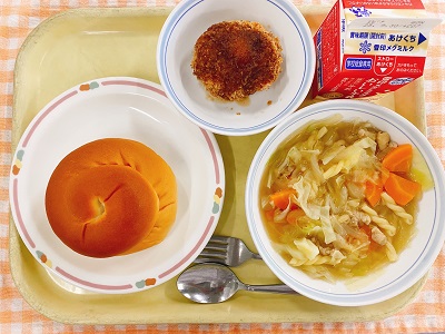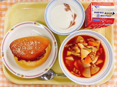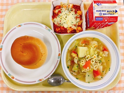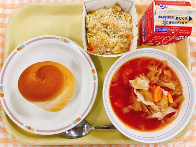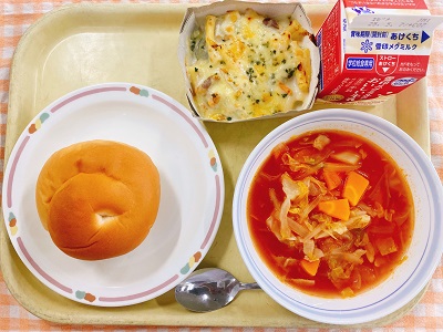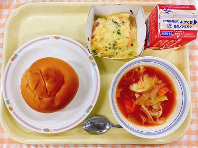 牛乳 ミルクパン マカロニグラタン トマトスープ