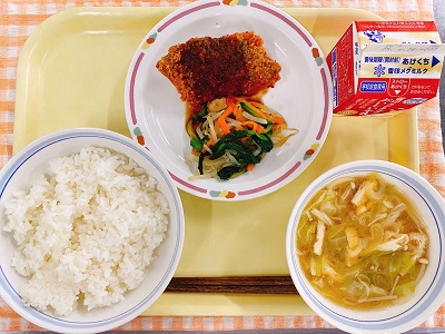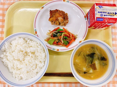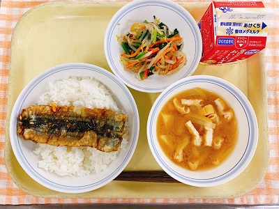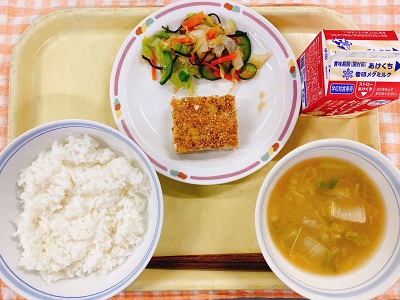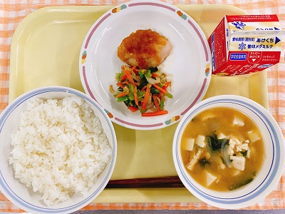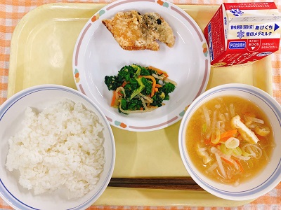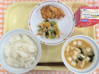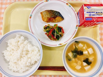 牛乳 ご飯 鰆の竜田揚げ ごまあえ みそ汁