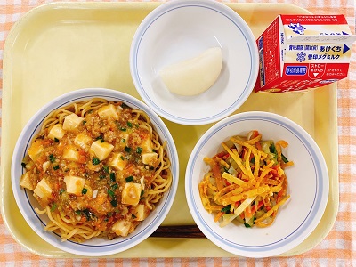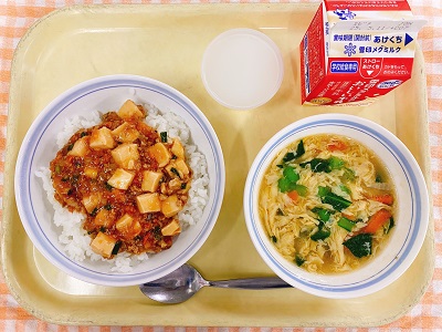 牛乳 麻婆豆腐丼 中華卵スープ カルピスゼリー