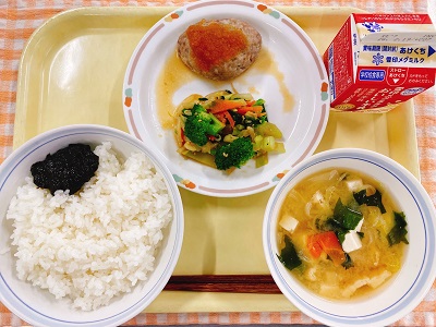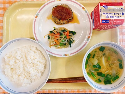 牛乳 ご飯 和風ハンバーグ 小松菜の和え物 みそ汁