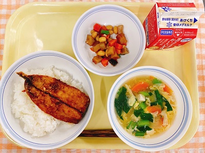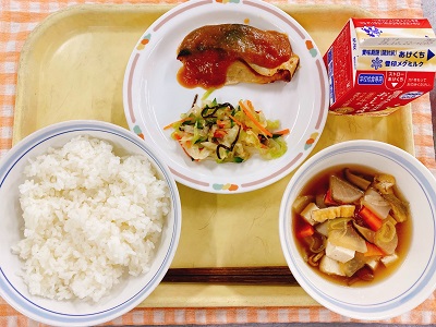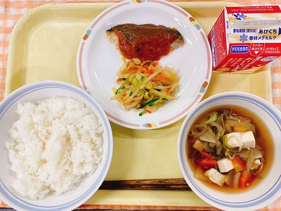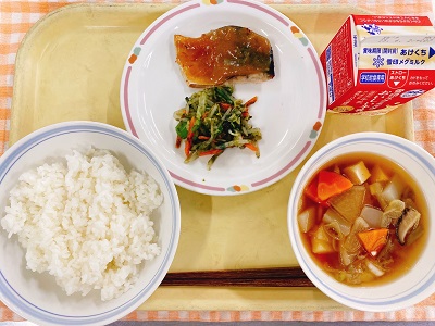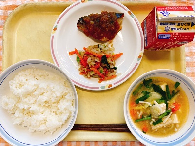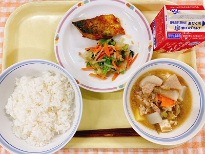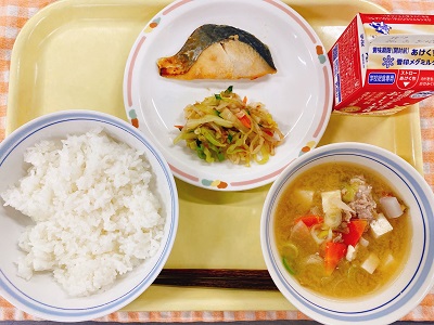 牛乳 ご飯 鰆の西京焼き 磯和え ごま豚汁