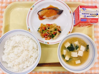 牛乳 ご飯 ぶりの照り焼き おかか和え みそ汁