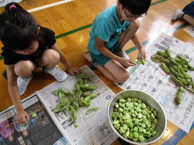 6月13日(火曜)1年生がそら豆のさやむき体験をしました。