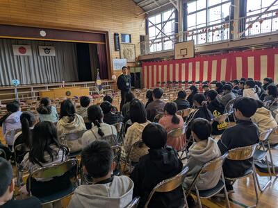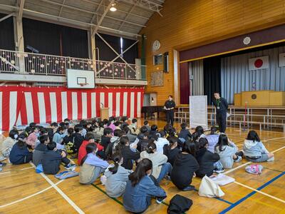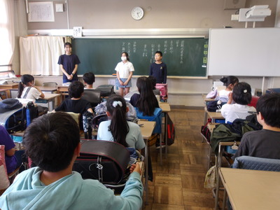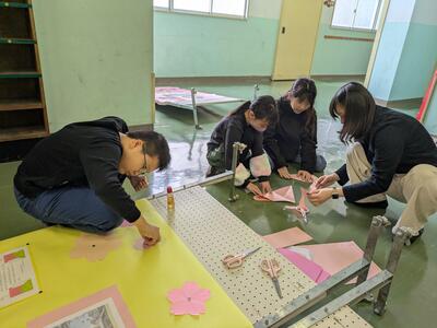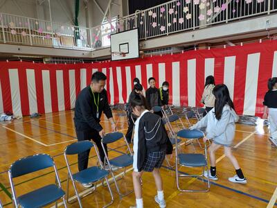 新2年生が一足早く登校し、新1年生の入学式の歓迎の催しに向けて、練習を行いました。