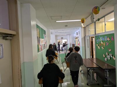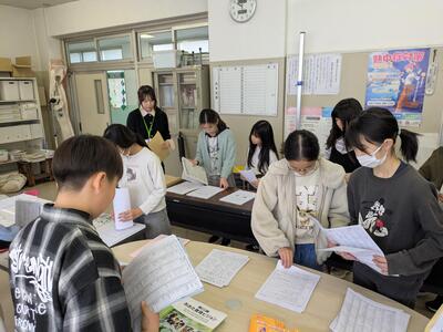各教室の責任者の人に2年生がインタビューをしに来ました。