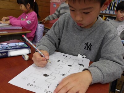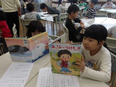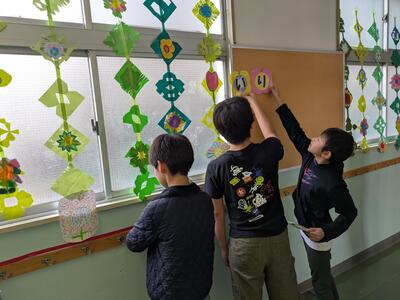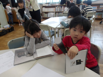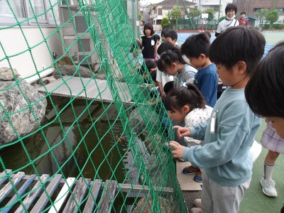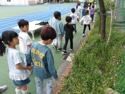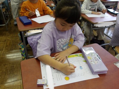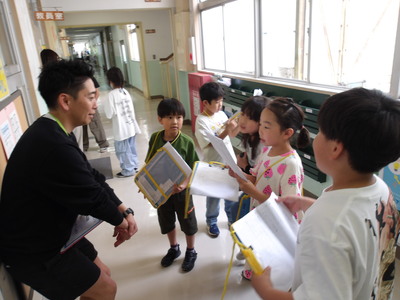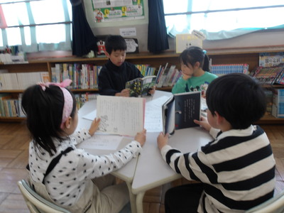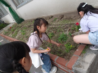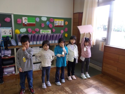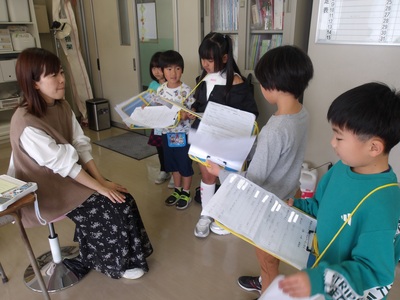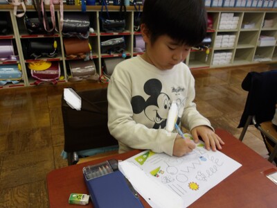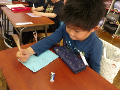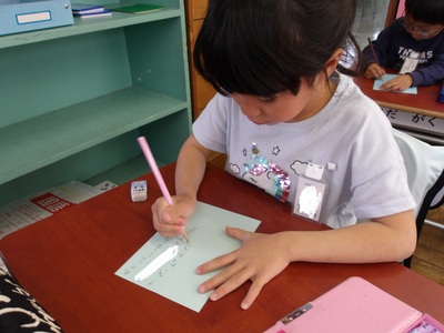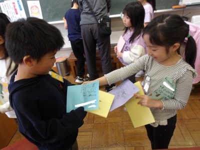 友達に紹介する名刺を作ったり、校庭に春探しに行ったりしていました。