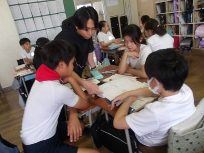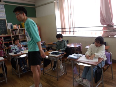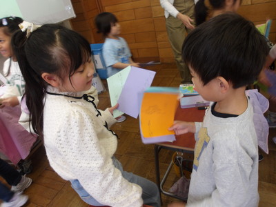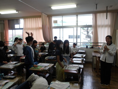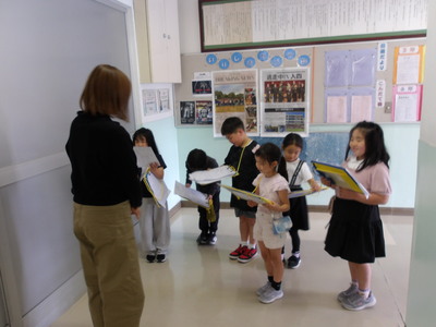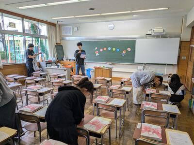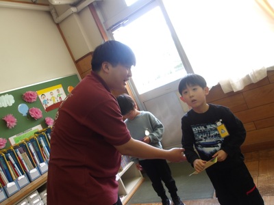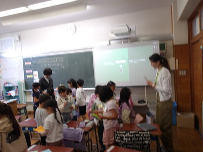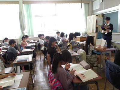 国語では、自己紹介の名刺を渡しあって、説明していました。