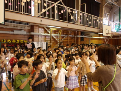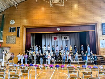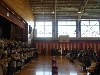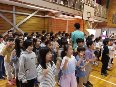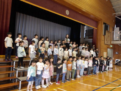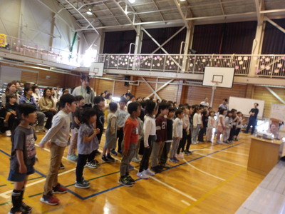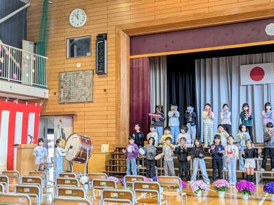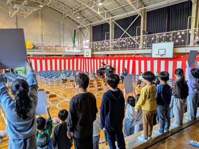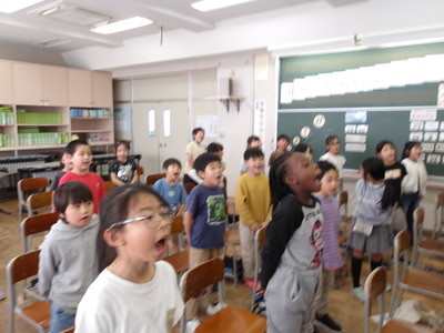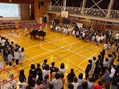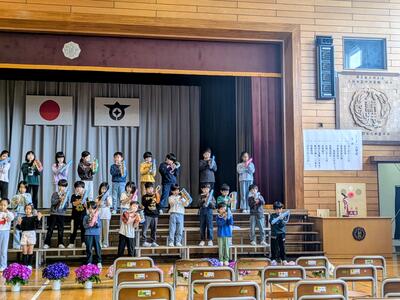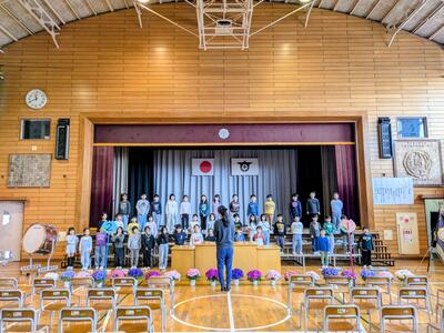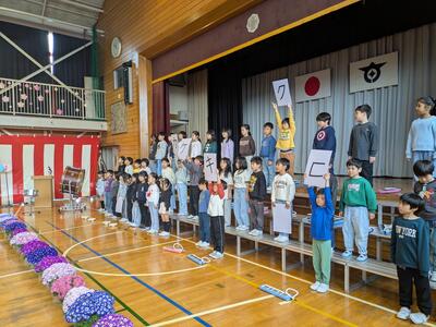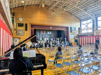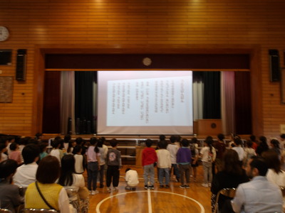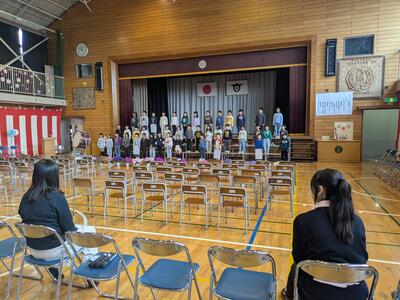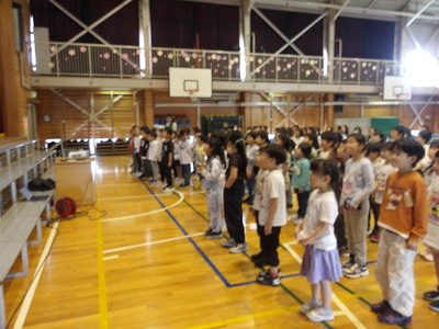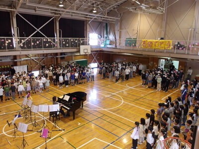 「1年生を迎える会」に向けて、2~6年生で校歌の練習をしました。