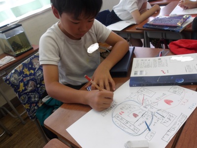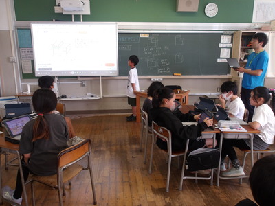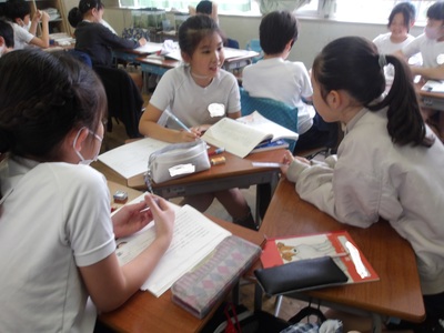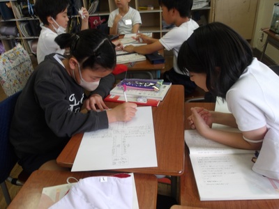 学習ごとに机の配置を変えたり、関わり合いの人数を変えたりしながら学習をすすめています。