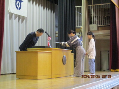 各クラスの代表児童が校長先生から終了証を受け取りました。