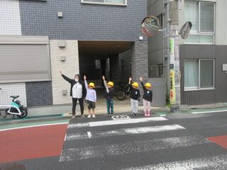 直前まで降っていた雨が上がり、実際に横断歩道を歩く体験ができたので、こどもたちはより実践的に学ぶことができました。