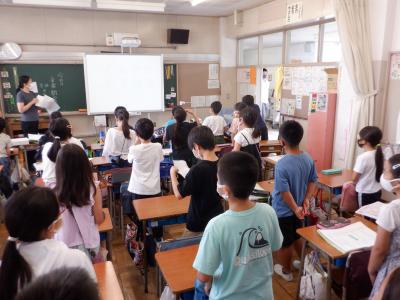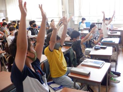 1校時目は学年一緒に体育館で子供たちからの様々な疑問に答えていただきました。
