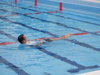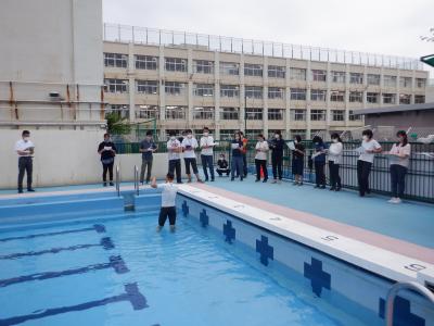 今回の研修では、「着衣泳」をテーマに実技を交えて行いました。