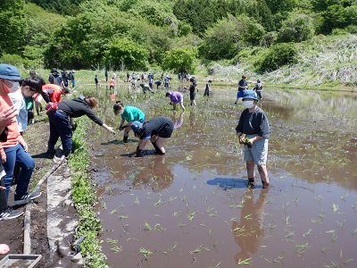二日目は「田植え体験」を行いました。田植えの大変さを実感し、貴重な体験となりました。