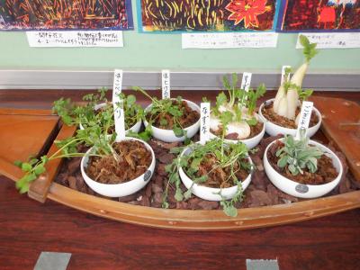今年も園芸ボランティアの方が、春の七草をいけてくださいました。
