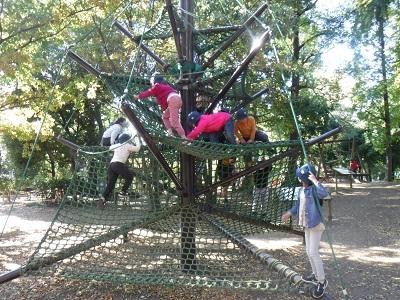アスレチックでは、グループで協力しながら楽しく遊ぶことができました。どのようにしたらうまく上ったり下りたりできるのか、声を掛け合っている姿に成長を感じました。