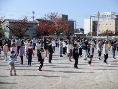 今回の体育朝会は、4,5,6年生対象で、コオーディネーショントレーニングを行いました。