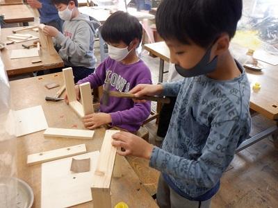 こちらは図工クラブの様子です。クラブ長さんがつくり方などをわかりやすく説明してくれるので初めての4年生も安心して作業ができています!