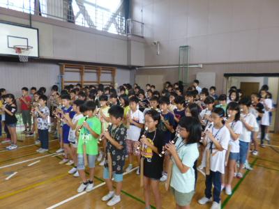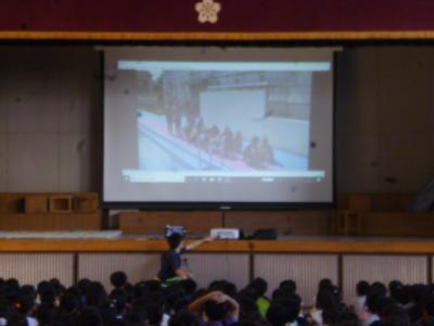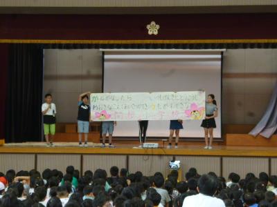 集会委員の児童がピョンピョンと舞台を飛び跳ね、大盛り上がりでした!