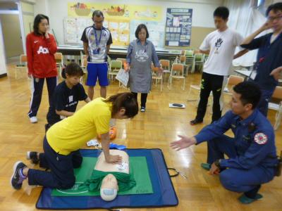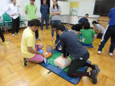 6月10日に教職員対象の救命救急法の講習会を行いました。6月17日(月曜)より水泳指導が始まります。水の事故は命にかかわる重大な事故に繋がりかねません。救命救急法では、応急手当として胸骨圧迫(心臓マッサージ)の方法やAEDの使用方法などを学びました。今年度も安全に十分配慮して、指導を行ってまいります。