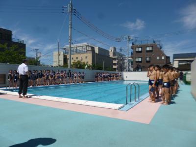 1,2時間目は6年生がプールに入りました。各学年、初めての水泳授業では『プール開き』を行います。校長先生からお話をいただくとともに、代表児童が今年度の目標を発表します。