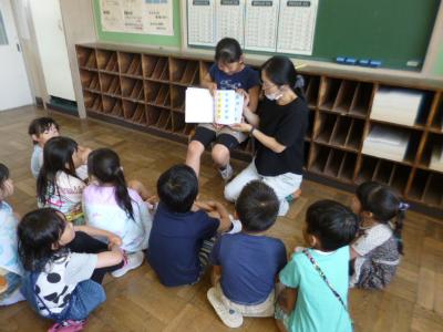 1年生はこの体験をする前に、「そらまめくんのベット」という絵本を読みました。