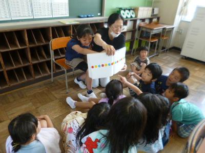 お話に合わせて本を振ったり、傾けたり、触ったりしながら、みんなで楽しみました♪