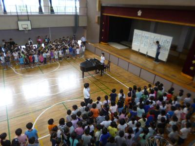 今回の音楽集会では、6月の歌『つばさをください』を歌いました。
