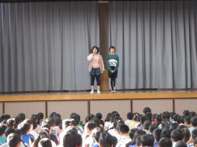 図書委員からは、開桜小読書週間に伴い、家読の説明や図書室利用についての呼びかけ、読み聞かせのお知らせなどがありました。