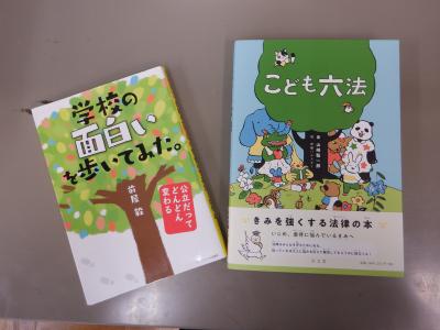本日の全校朝会では、校長先生からおすすめの本(こども六法)や今読んでいる本(学校の面白いを歩いてみた。)の紹介がありました。