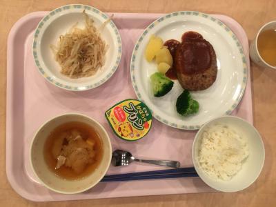 1日目の夕食はハンバーグでした!野菜やお芋もほぼ完食しました!!